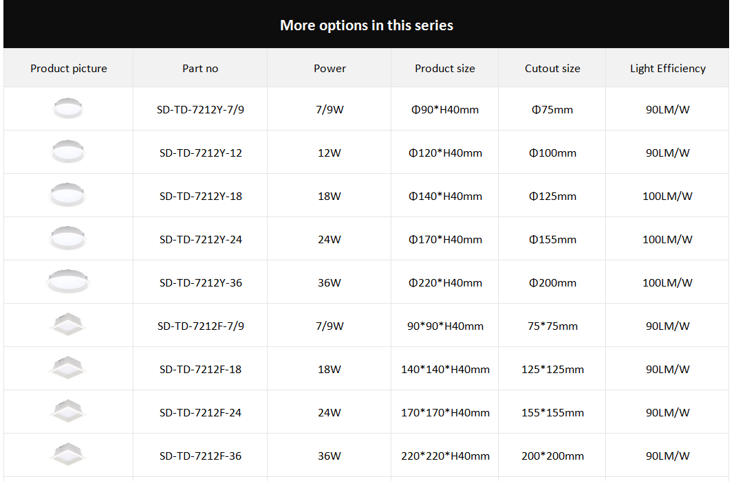 Fixed recessed SMD downlight with simple and clean design.Deep front frame provided LOW UGR to create a confortable environment,various of reflector color finishing to meet different using demand.